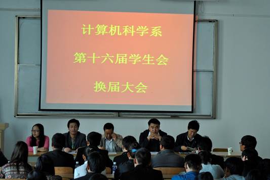 2015年10月15日下午16:30至18:30,计算机科学系第十六届学生会换届大会在逸夫楼215教室隆重举行。计算机科学系党总支书记闫宝华副教授、系主任赵俊生教授、系副主任范景行副教授、团总支书记马国俊副教授、辅导员张丽霞老师参加本次会议。